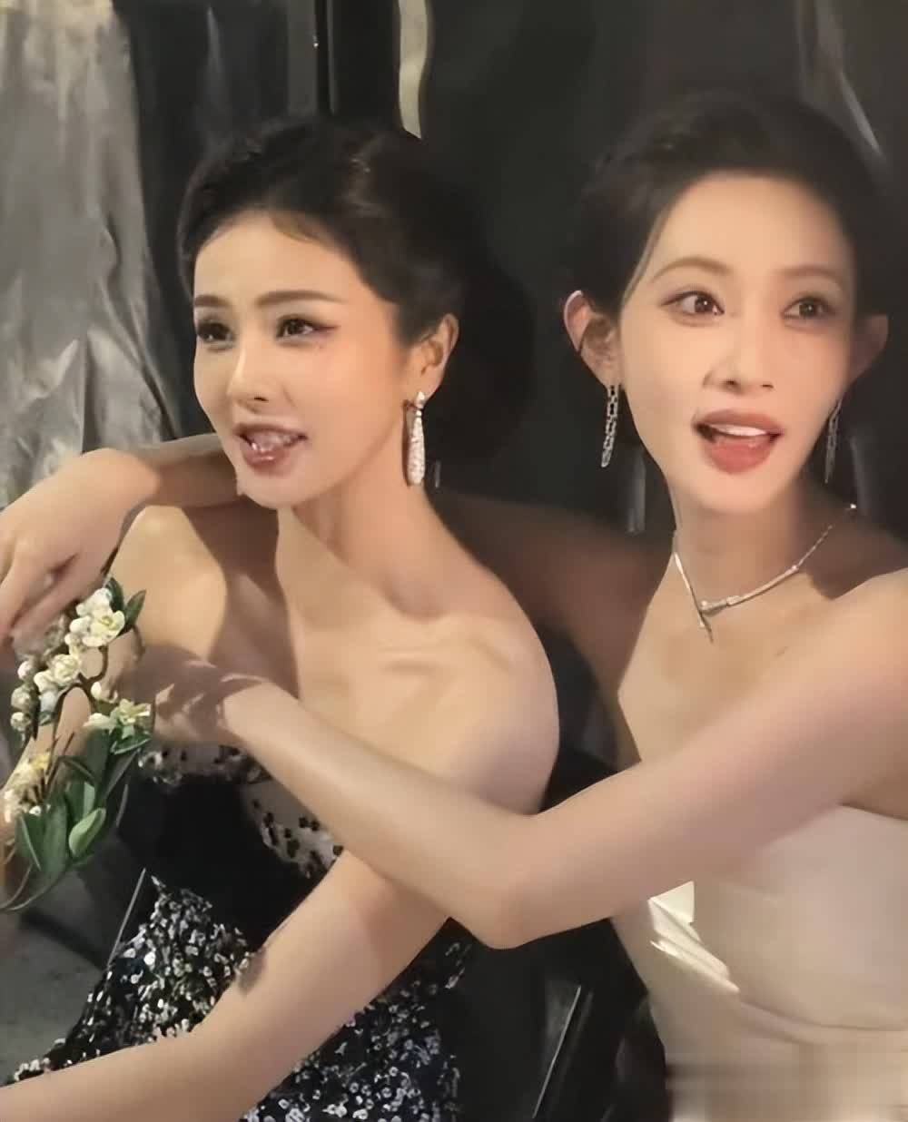 除了合照,现场流出的后台花絮更让人嗑到停不下来。有镜头拍到白鹿和孟子义躲在同一条披肩下热聊,还偷偷一起刷手机,不知道看到什么八卦,两人笑得前仰后合;休息时四人还凑在一起吃饺子,白鹿吃完还特意感谢孟子义分享的口味,全程像熟人局一样轻松自在。还有网友扒出,白鹿和孟子义在台下还互相戳脸嬉戏,丞磊站在旁边温柔看着,这波互动被调侃“像两对新人同时参加聚会,氛围太绝了”。不过要说明的是,这只是网友的趣味调侃,核心还是三人之间的默契友谊,并非情感暗示。